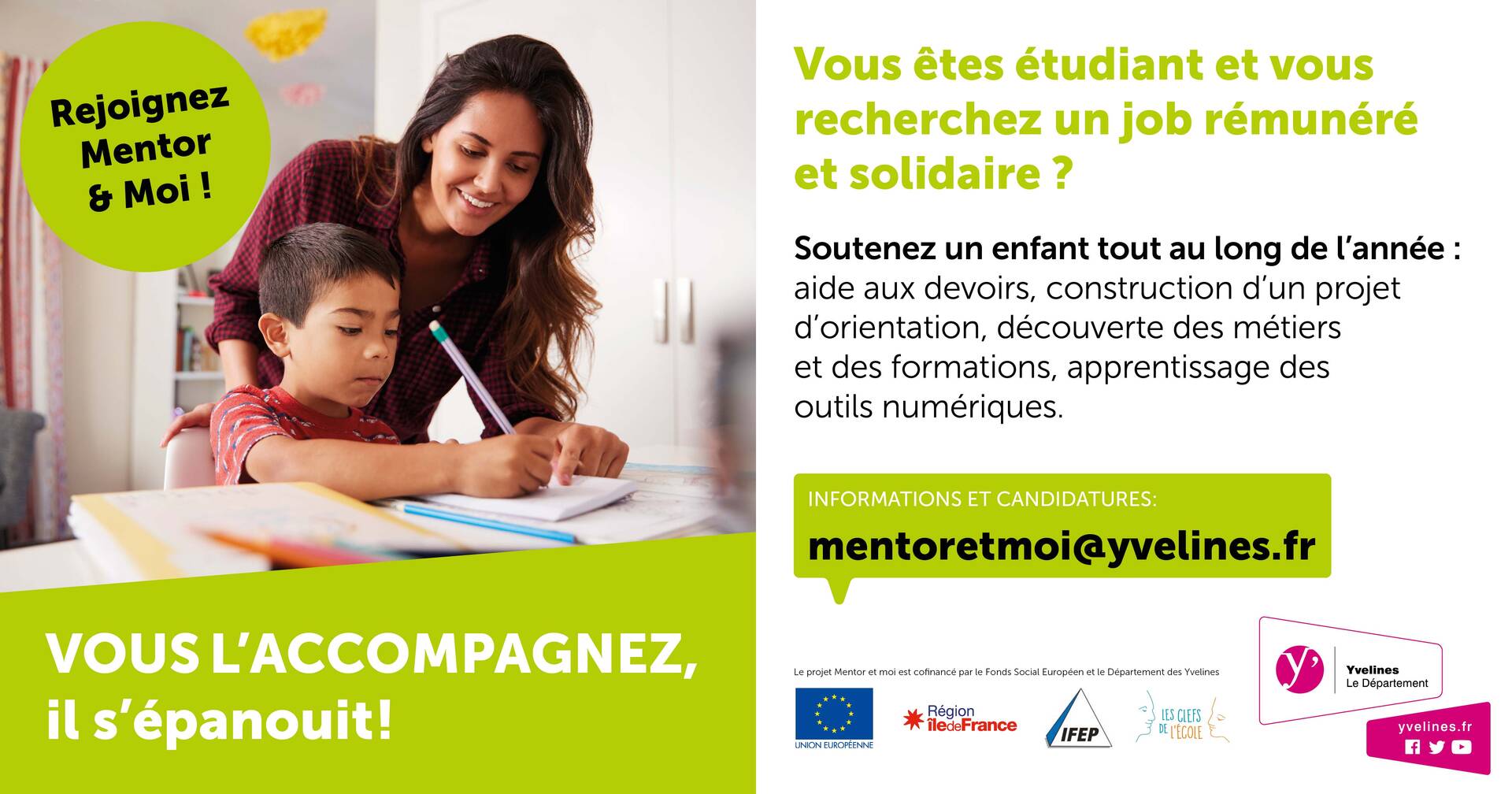 Depuis septembre 2021, le Département des Yvelines concrétise son engagement en faveur de l’égalité des chances et soutient le programme de mentorat « Mentor & Moi » pour offrir à tous les jeunes yvelinois et notamment les enfants accueillis par l’Aide Sociale à l’Enfance (ASE), les moyens de réussir leur parcours vers l’autonomie.