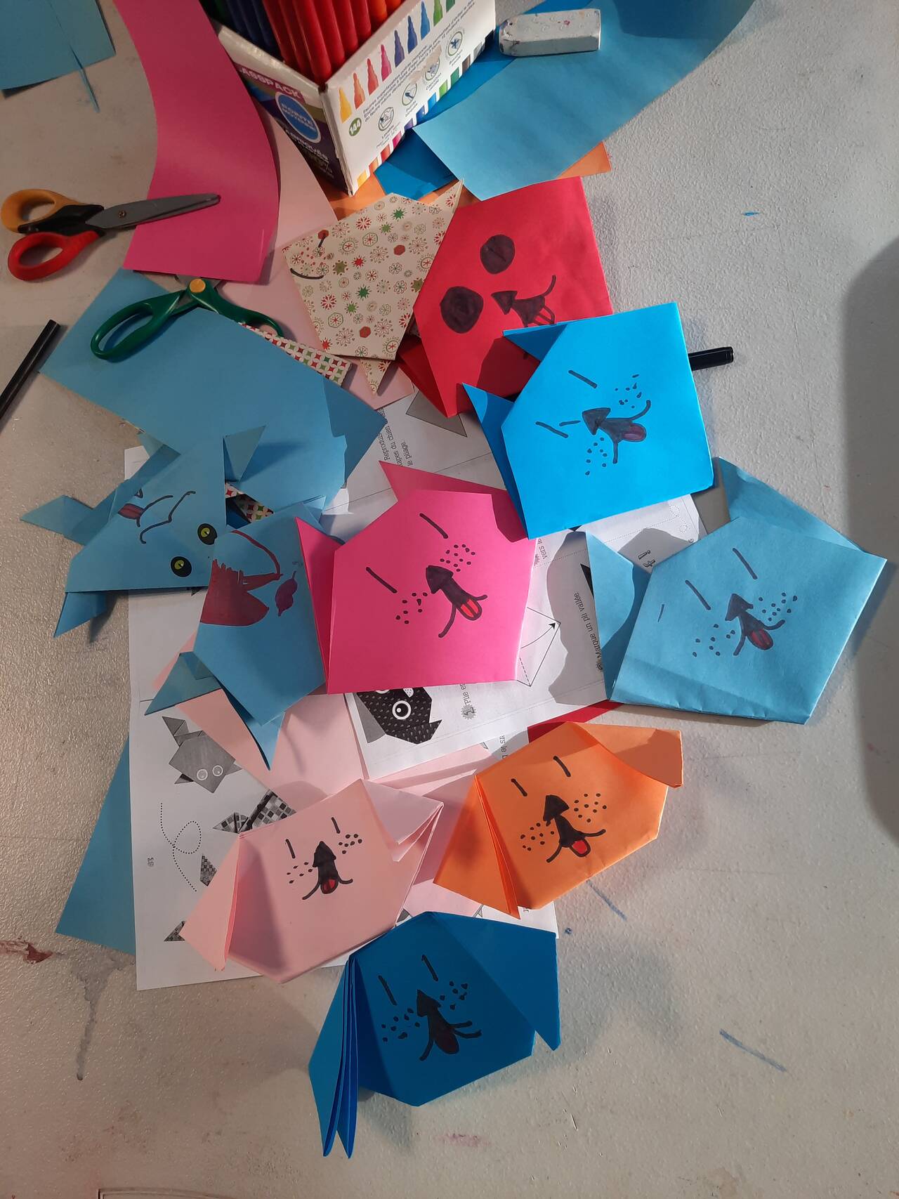 Nous sommes donc allés à la maison de quartier de Chantiers afin d’organiser une activité origami pour des enfants entre 6 et 10 ans. Nous avons pu rester une heure durant laquelle nous les avons aidé à réaliser plusieurs origamis de leur choix comme des chats, des chiens, des poissons ou encore de grenouilles. Certains ont même pu nous apprendre certains origamis que nous ne connaissions pas. Nous avons découvert l’ambiance qui régnait mais aussi des jeunes débordants d’énergie et prêts à utiliser l’habilité de leurs mains pour réaliser des origamis tous aussi uniques les uns que les autres.