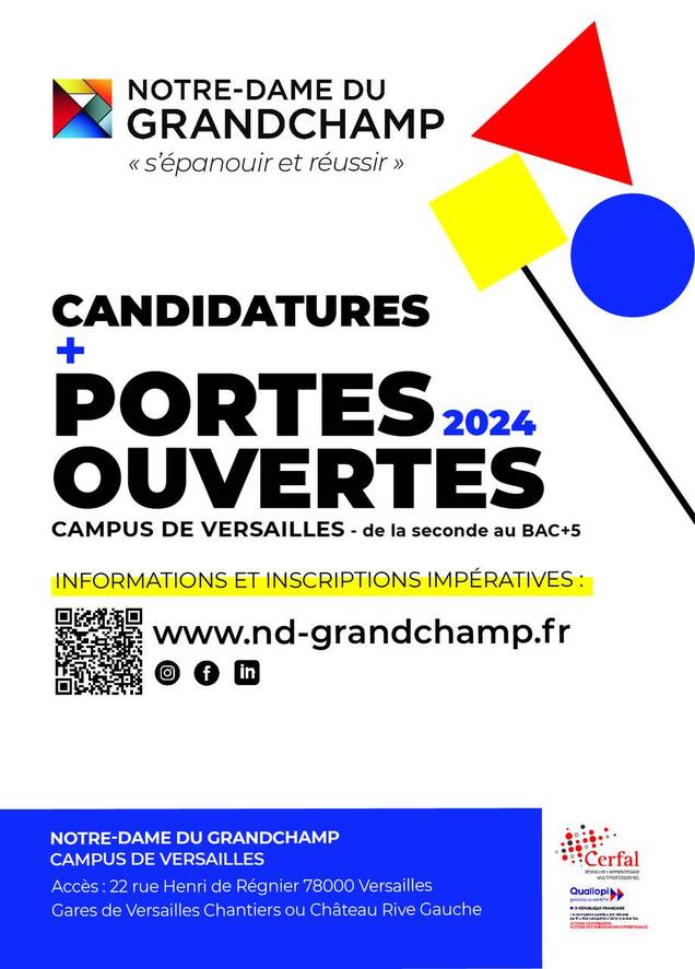 Réunions d'information avec inscription impérative sur leur site internet www.nd-grandchamp.fr